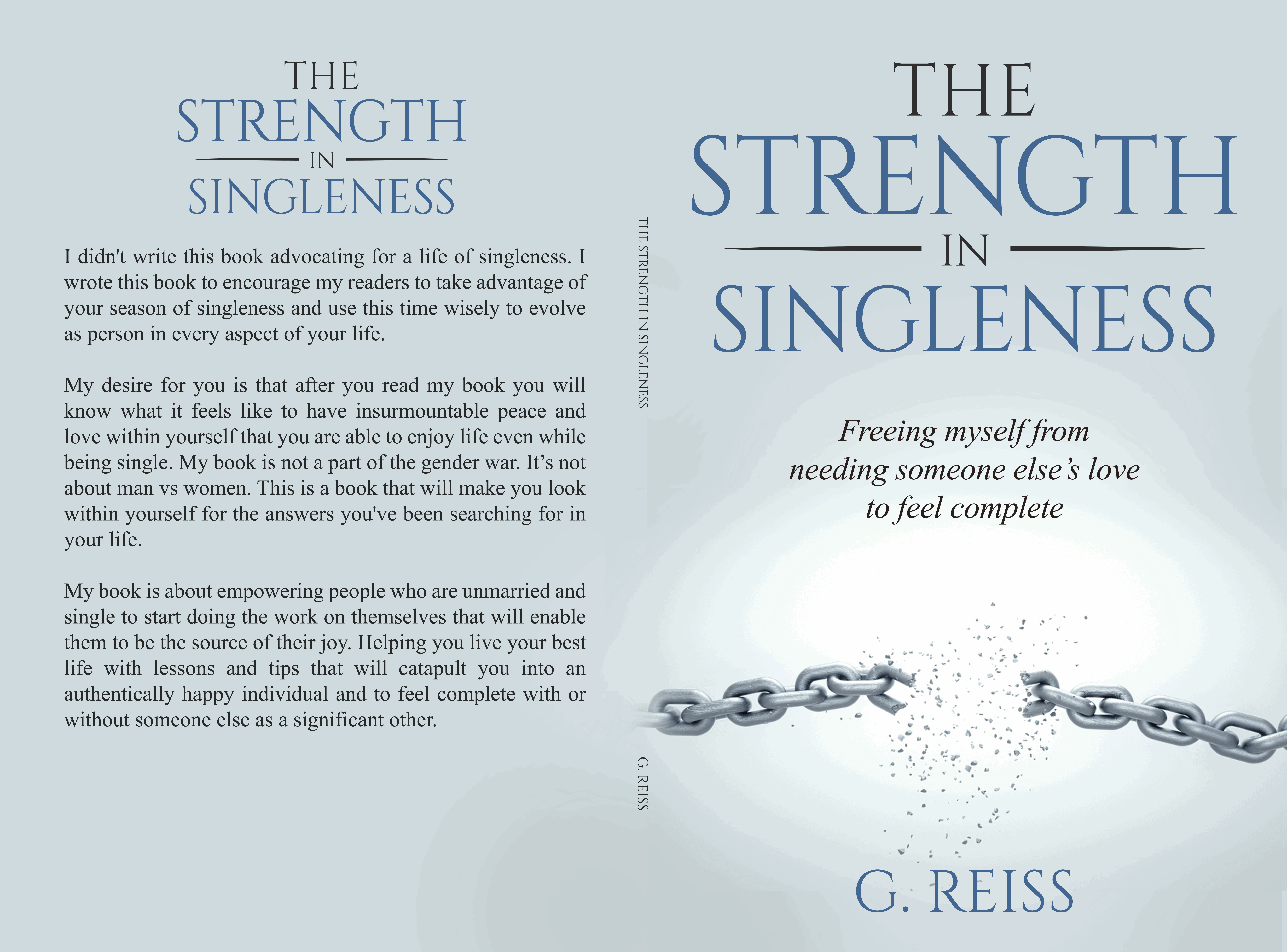 I didn't write this book advocating for a life of singleness. I wrote this book to encourage my readers to take advantage of your season of singleness and use this time wisely to evolve as person in every aspect of your life. My desire for you is that after you read my book you will know what it feels like to have insurmountable peace and love within yourself that you are able to enjoy life even while being single. My book is not a part of the gender war. It’s not about man vs women. This is a book that will make you look within yourself for the answers you've been searching for in your life. My book is about empowering people who are unmarried and single to start doing the work on themselves that will enable them to be the source of their joy. Helping you live your best life with lessons and tips that will catapult you into an authentically happy individual and to feel complete with or without someone else as a significant other.